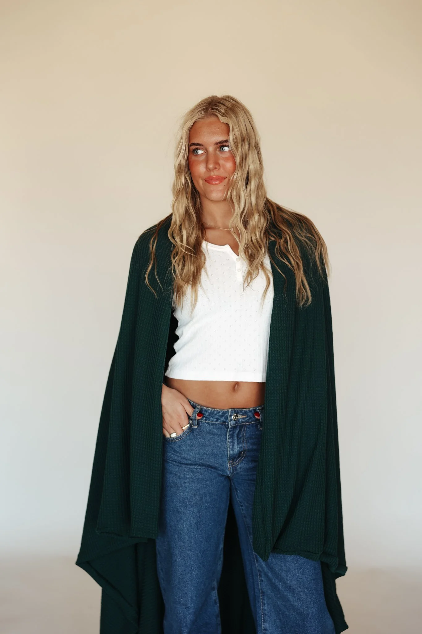 -made of 70% polyester, 28% rayon, & 2% spandex; waffle knit